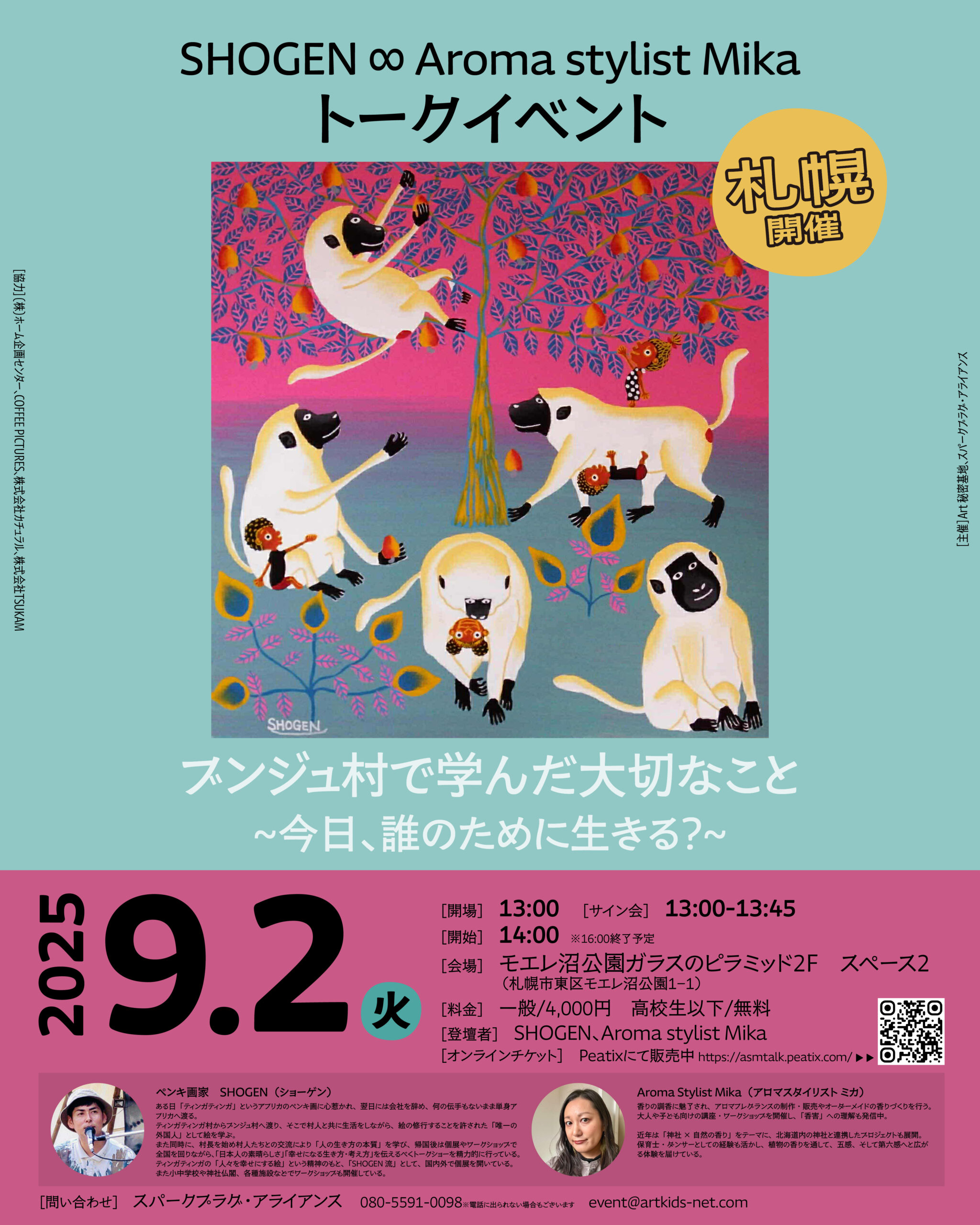 ペンキ画家SHOGENさんと、昨年度に放課後アート秘密基地に採択されたアーティストのAroma Stylist Mikaさんによるトークイベントを、共同主催することになりました。
